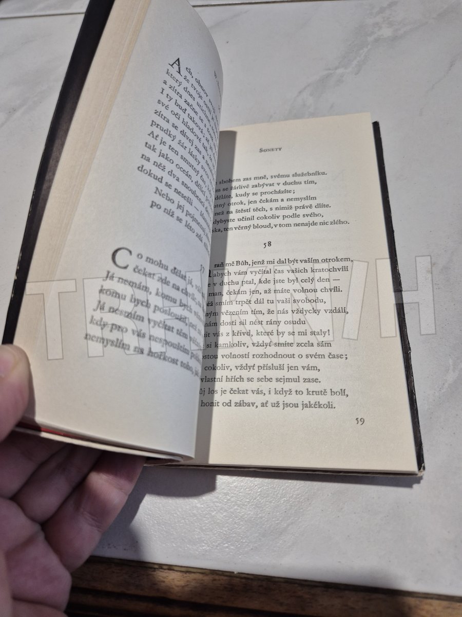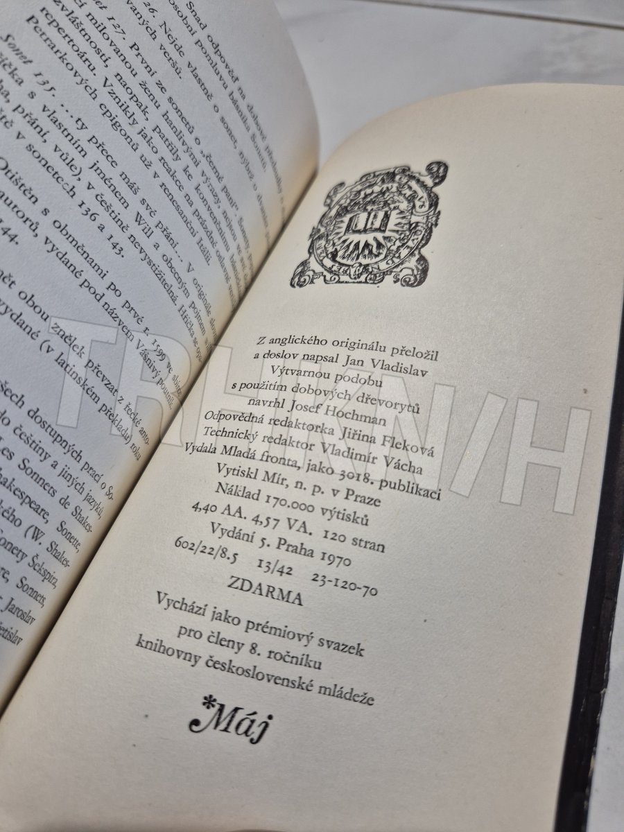 Páté vydání 154 Shakespearových sonetů, tentokrát v překladu Jana Vladislava. Prémiový svazek 8. ročníku edice Máj.