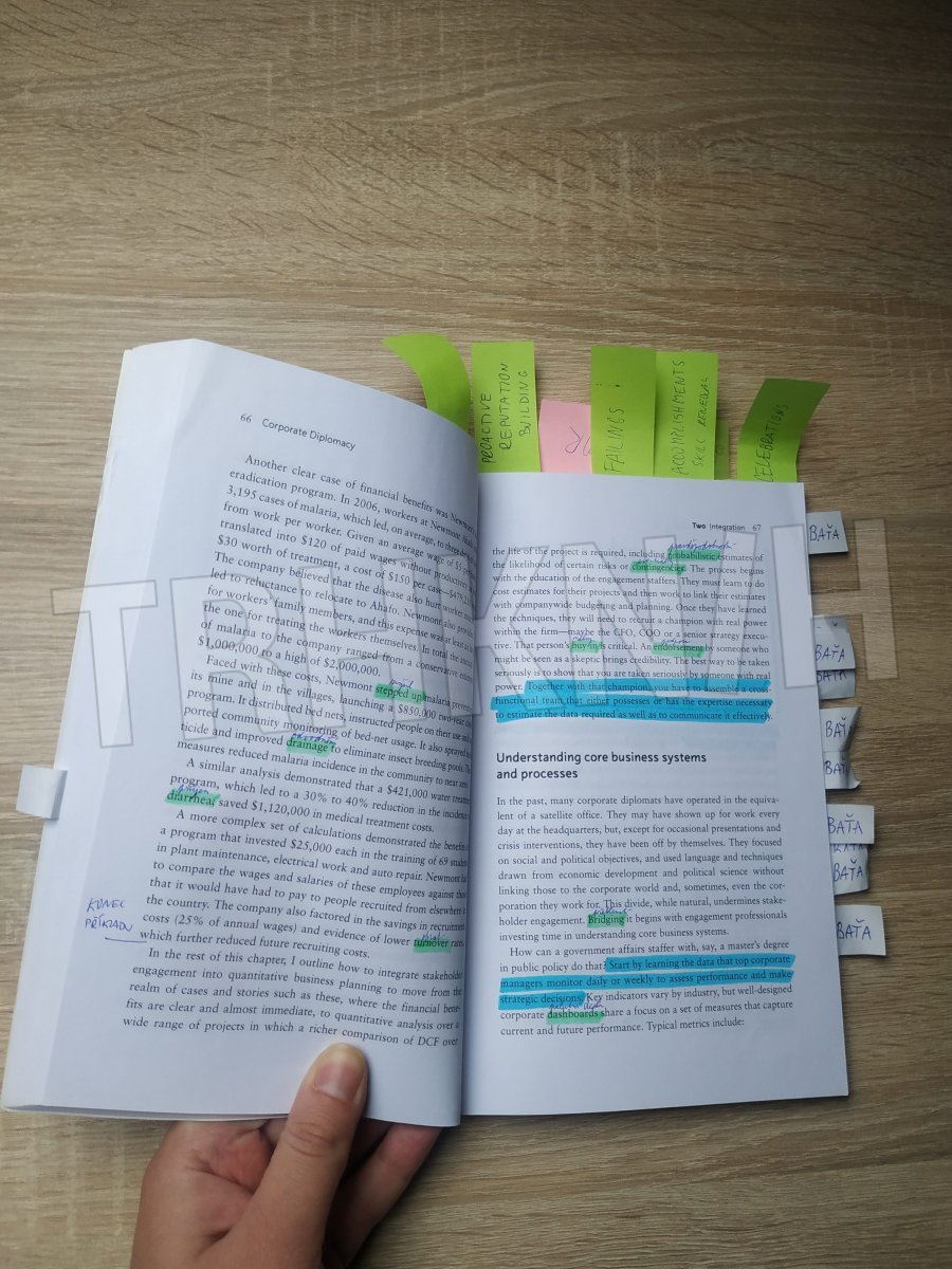 V knize jsou některé pasáže vyznačeny barevně, po bocích nalepeny barevné lístečky (kniha byla využita při psaní diplomové práce). Nad některými anglickými slovíčky jsou uvedeny jejich české ekvivalenty. Vysoká cena knihy odpovídá cca jedné třetině její p