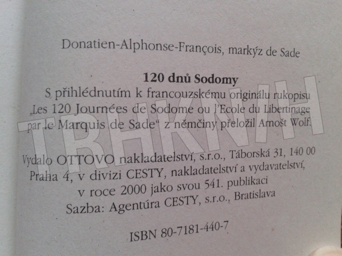 Donatien Alphonse François de Sade ; [s přihlédnutím k fr. orig. rukopisu z něm. přel. Arnošt Wolf]