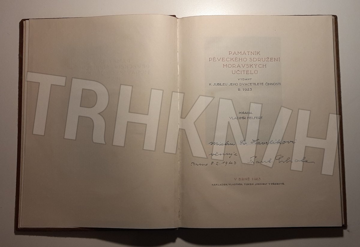 Kniha Památník pěveckého sdružení Moravských učitelů 1923 - vydaný k jubileu jeho dvacetileté činnosti r. 1923 - Trh knih - online antikvariát