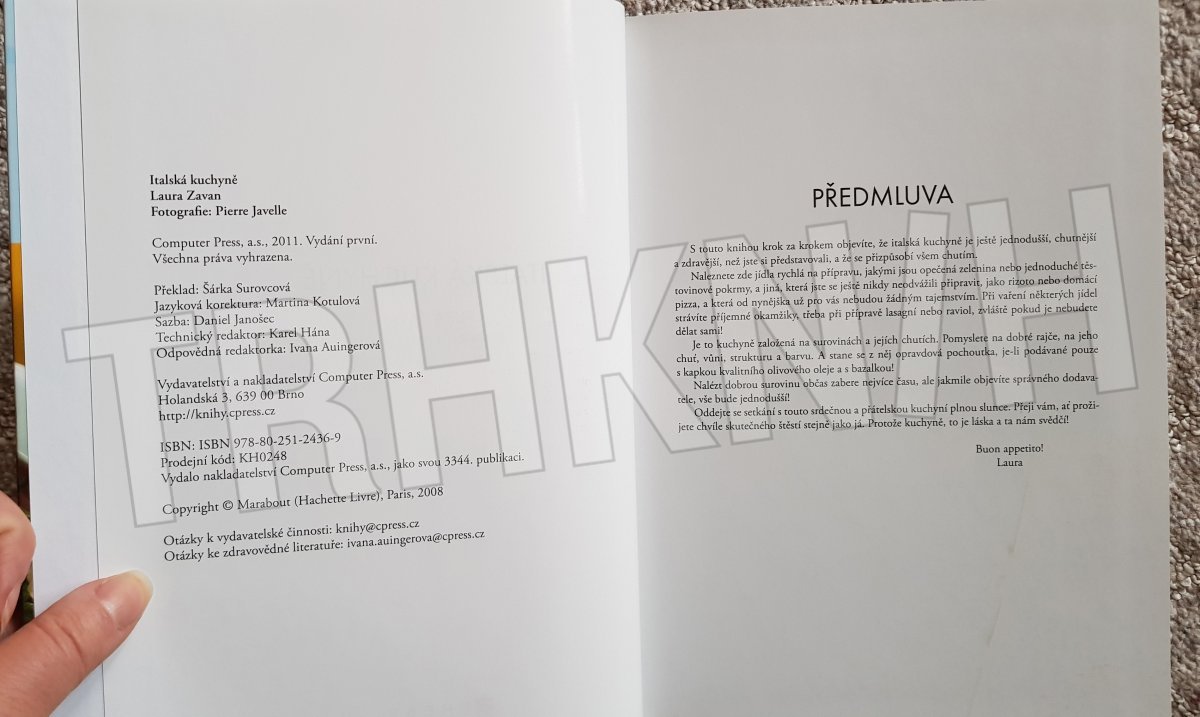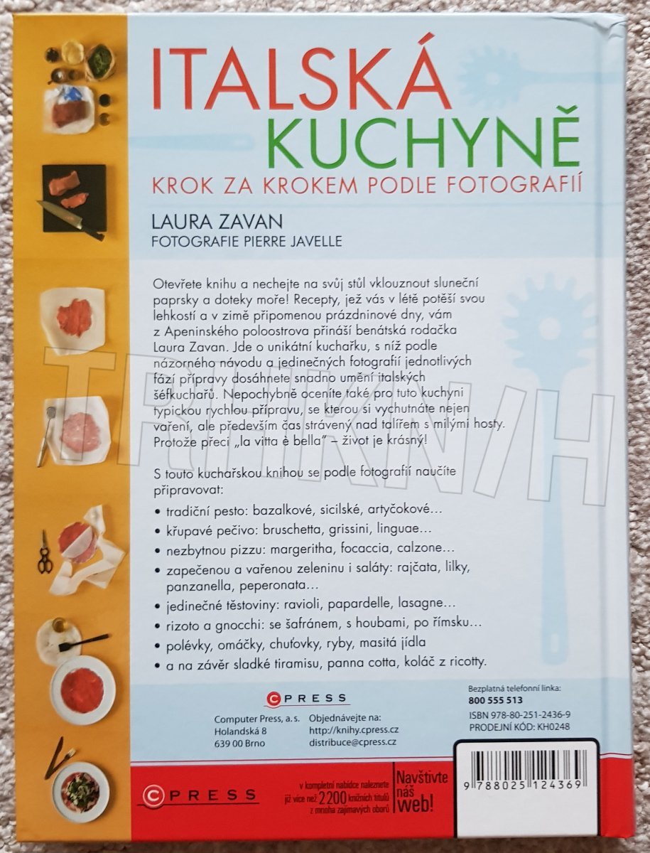 Otevřete knihu a nechejte na svůj stůl vklouznout sluneční paprsky a doteky moře! Recepty, jež vás v létě potěší svou lehkostí a v zimě připomenou prázdninové dny, vám z Apeninského poloostrova přináší benátská rodačka Laura Zavan. S unikátní kuchařkou, v níž podle názorného návodu a jedinečných fotografií jednotlivých fází přípravy dosáhnete snadno umění italských šéfkuchařů. Nepochybně oceníte také pro tuto kuchyni typickou rychlou přípravu, se kterou si vychutnáte nejen vaření, ale především čas strávený nad talířem s milými hosty. Protože přeci „la vitta e bella“ – život je krásný!