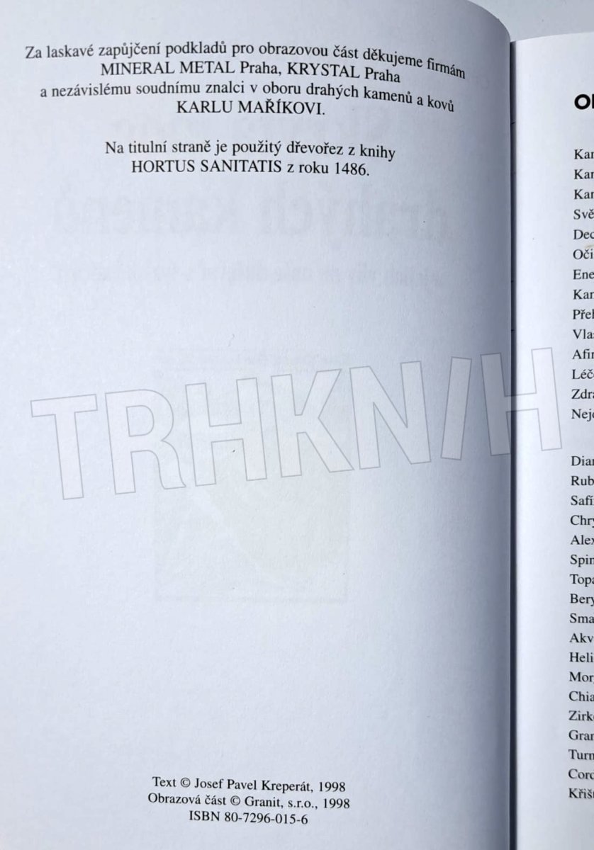 Všechny základní drahé kameny včetně korálů, perel, tektitů a drahých kovů. Jejich vnitřní síla a schopnost působit na lidský organismus. Vydání je doplněné kameny zvěrokruhu a rejstříkem.
