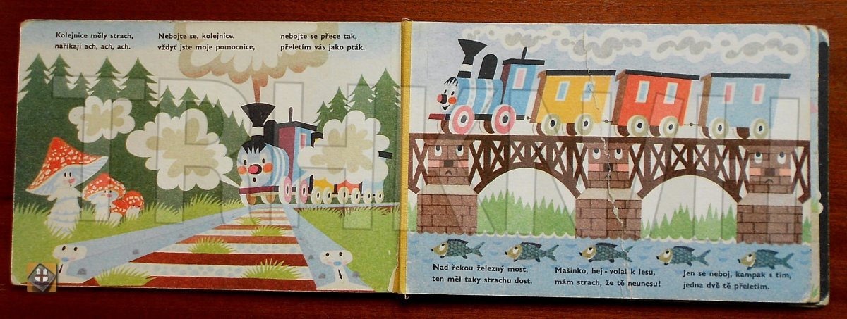 Rok vydání - 1988. Leporelo, 11 stran, formát 24x17cm, ilustrace Zdeněk Miler, opotřebované desky, jedna deska nalomená, natržený hřbet.