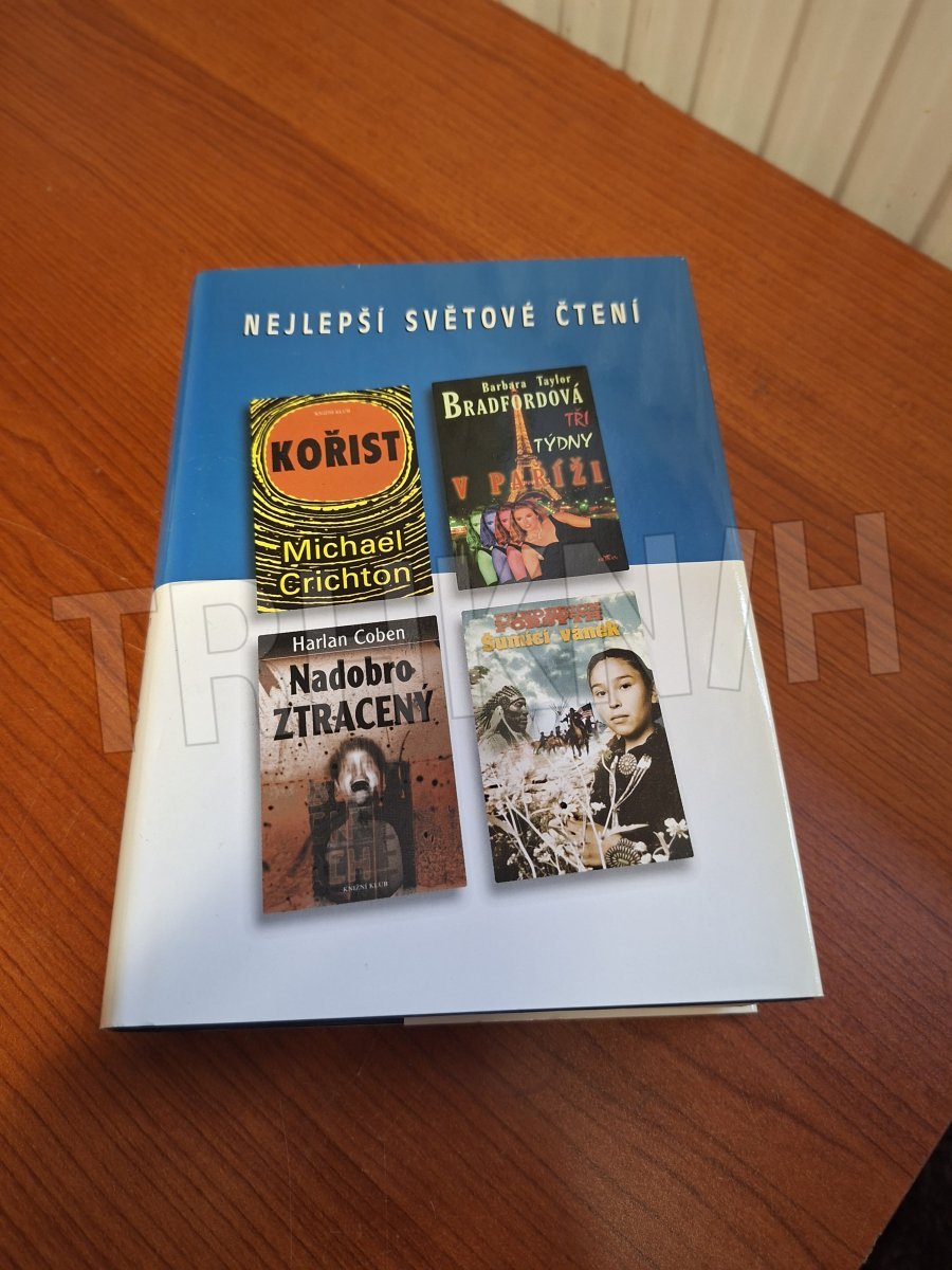 Kniha přináší překlady čtyř úspěšných románů se záhadnou nebo kriminální zápletkou od anglických a amerických autorů. / Kořist - Michael Crichton / Tři týdny v Paříži - Barbara Taylor Bradfordová / Nadobro ztracený - Harlan Coben / Šumící vánek - Frederick Forsyth