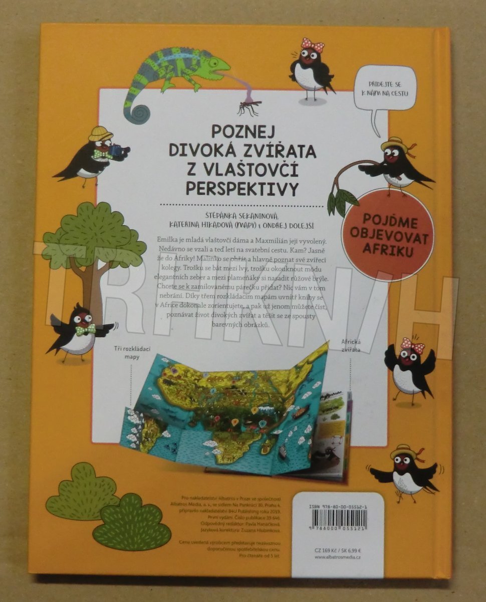 Emilka je mladá vlaštovčí dáma a Maxmilián její vyvolený. Nedávno se vzali a teď letí na svatební cestu. Kam? Jasně že do Afriky! Malinko se ohřát a hlavně poznat své zvířecí kolegy. Chcete se k zamilovanému párečku přidat? Nic vám v tom nebrání. Díky třem rozkládacím mapám uvnitř knihy se v Africe dokonale zorientujete, a pak už jenom můžete číst, poznávat život divokých zvířat a těšit se ze spousty barevných obrázků.