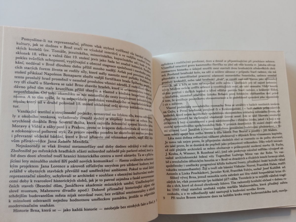 Obrazový průvodce, doplněný stručným přehledem o vývoji Brna a popisem fotografovaných objektů, zachycuje dnešní tvář města a jeho okolí. Přináší snímky významných historických památek i současné výstavby, interiéry architektonicky pozoruhodných staveb, záběry z brněnských ulic a parků i fotografie zajímavých budov a míst v okolí Brna.