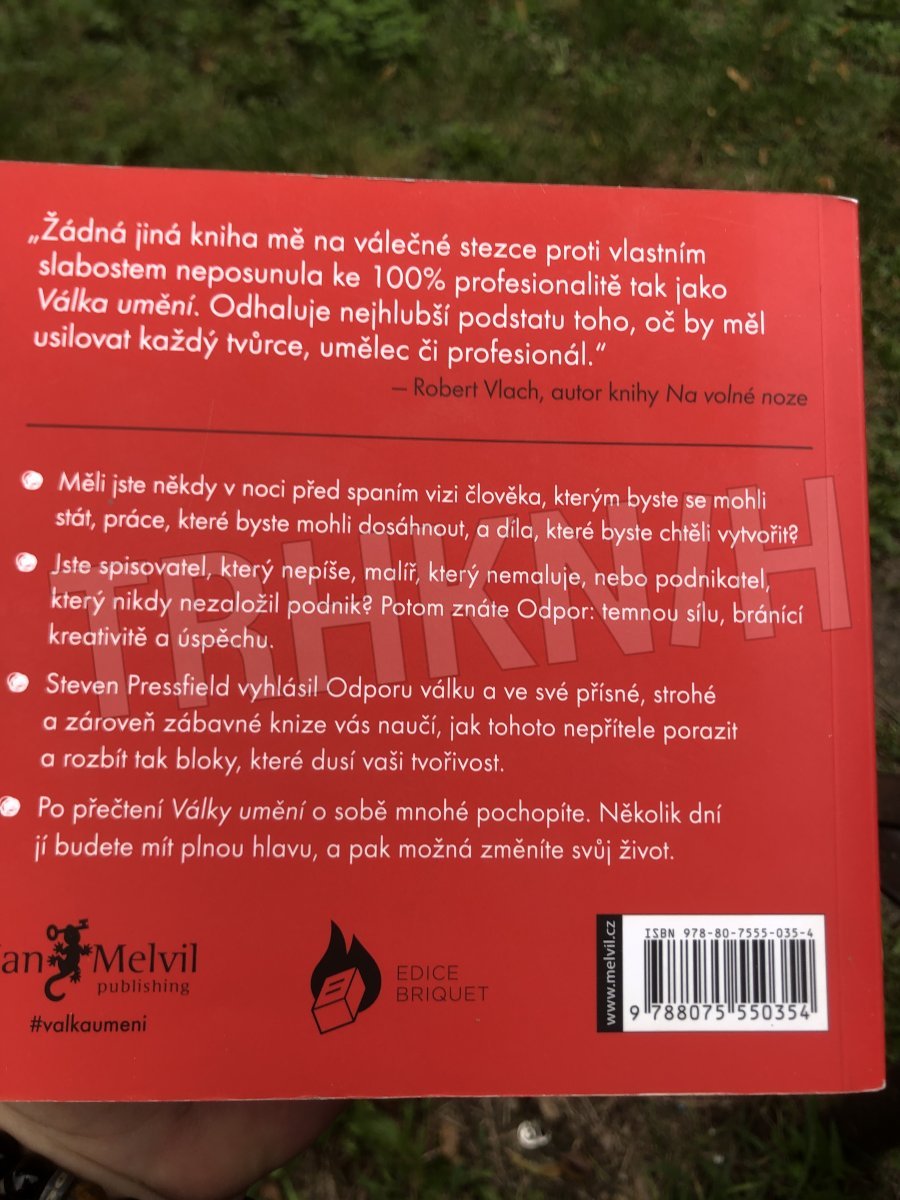 Žádná jiná kniha mě na válečné stezce proti vlastním slabostem neposunula ke 100% profesionalitě tak jako Válka umění. Odhaluje nejhlubší podstatu toho, oč by měl usilovat každý tvůrce, umělec či profesionál.“ — Robert Vlach, autor knihy Na volné noze