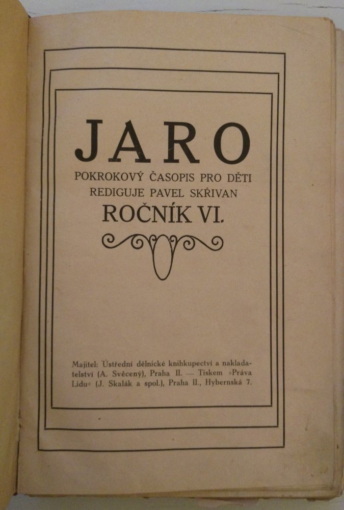 Rok vydání není uveden, ale číslo VI odpovídá zřejmě roku 1913. Jedná se o souhrnné vydání jednotlivých čísel časopisu. V pevné vazbě. Stav odpovídá stáří, ale je velmi dobrý. Uvnitř básně, mnoho ilustrací, reprodukcí uměleckých děl atd. V nabídce mám ješ