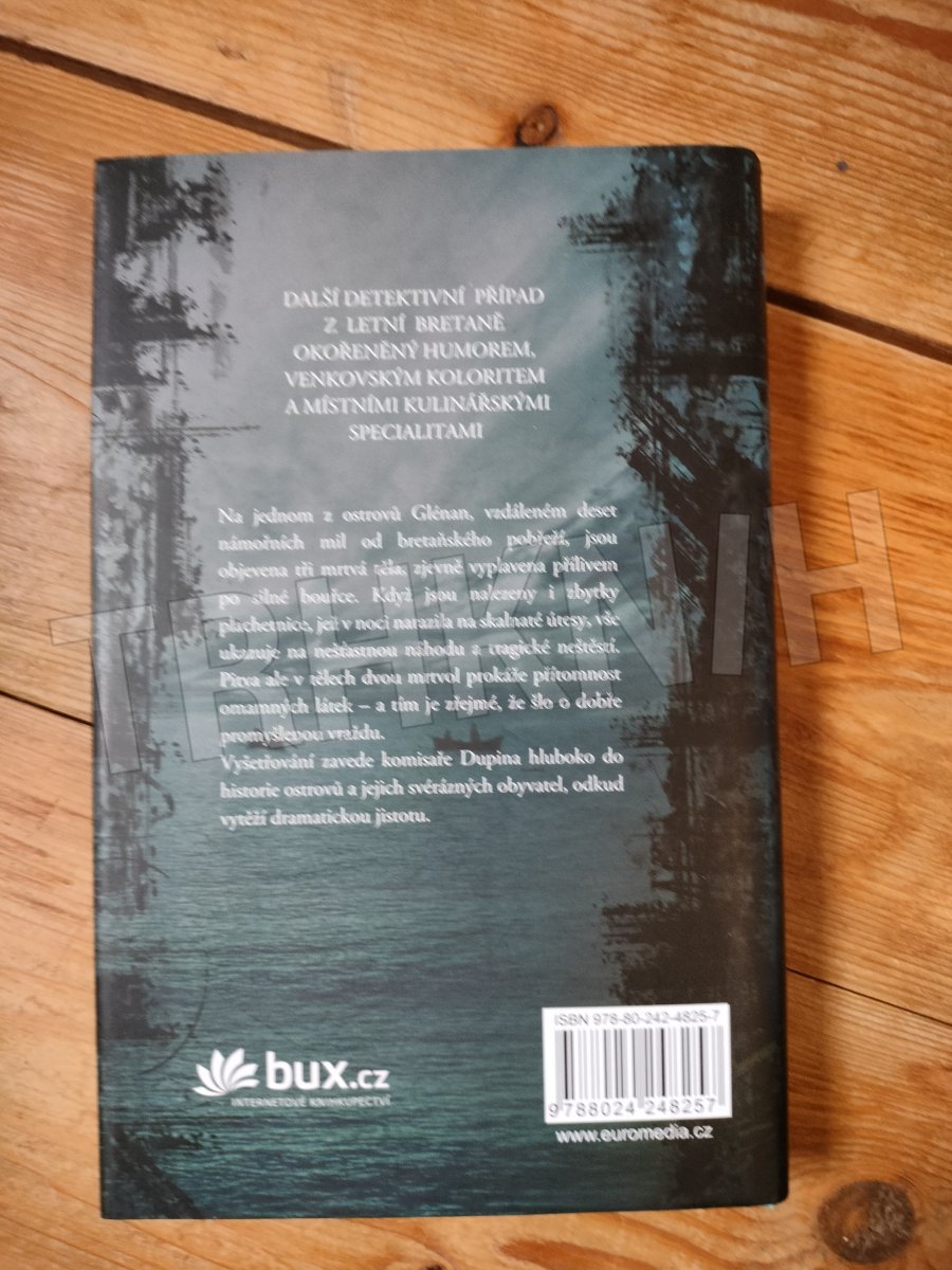 Druhý případ komisaře Dupina z letní Bretaně okořeněný humorem, venkovským koloritem a místními kulinářskými specialitamiDeset námořních mil od Concarneau: Legendami opředené souostroví Glénan působí svými bílými písečnými plážemi a křišťálově průzračnou vodou jako karibský ráj – dokud jednoho krásného květnového dne moře nevyplaví na břeh tři mrtvoly. To komisaři Dupinovi ještě chybělo: cesta ve vratkém člunu hned po ránu, nervy drásající prefekt, málo kávy a žádný záchytný bod. Kdo jsou ti tři mrtví na pláži? Stali se obětí prudké noční bouřky? Vše nasvědčuje tomu, že se utopili. Ale vyšetřování zavede komisaře hluboko do historie ostrovů a jejich svérázných obyvatel, odkud vytěží dramatickou jistotu.