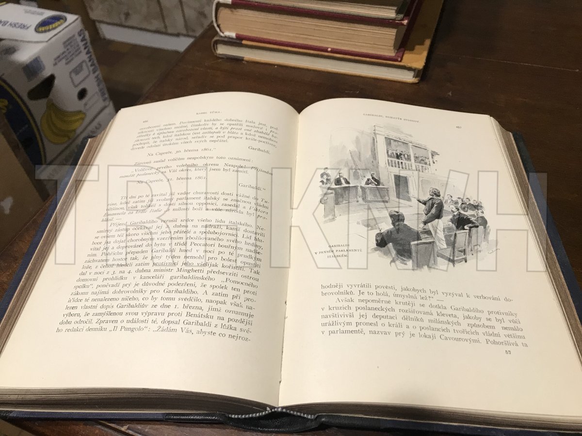 Josef Garibaldi, bohatýr svobody Autor: Tůma, Karel Místo vydání: V Praze Počet stran: 694 s. Rok vydání: 1908 Vazba: převazba Stav: odřené desky, zkosený hřbet, hnědé flíčky, jinak dobrý Nakladatel: Jos. R. Vilímek Kategorie: Životopisy Edice, série: kn