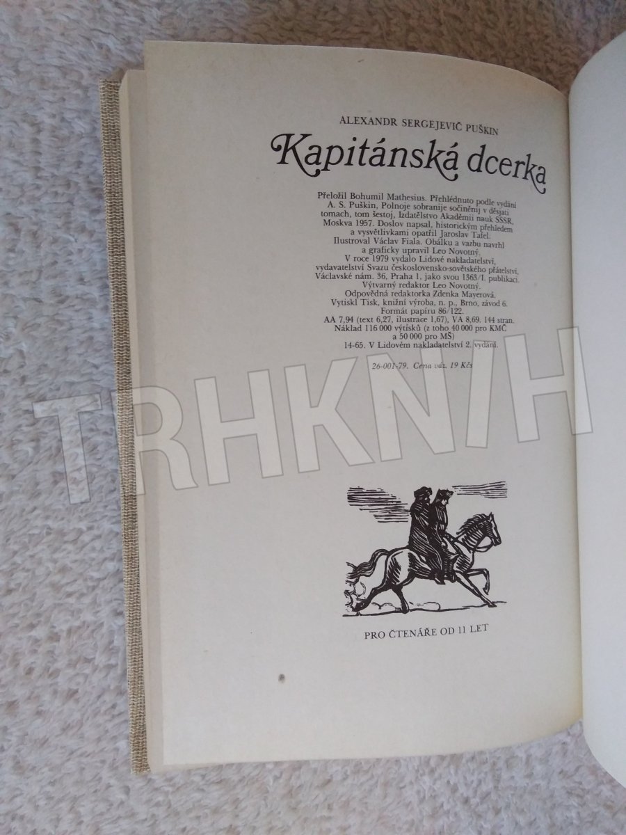 [Autor:] A. S. Puškin ; [Z rus. orig. Kapitanskaja dočka] přel. BohumiI Mathesius ; DosIov O babce, ďábIovi a jiných věcech na závěr naps., historickým přehledem Pugačovova povstání a vysvětl. opatřilJaroslav Tafel ; Il. Václav Fiala