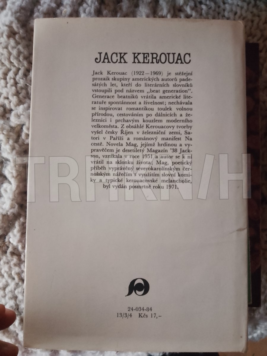 Mag Autor: Kerouac, Jack Vydání: 1 Místo vydání: Praha Počet stran: 131 s. Rok vydání: 1984 Vazba: vázaná s obálkou Stav: dobrý, na obálce a zadní straně desek stopa po polití Nakladatel: Práce Kategorie: Beletrie Edice, série: kniha Vytvořeno: 2021-10-1