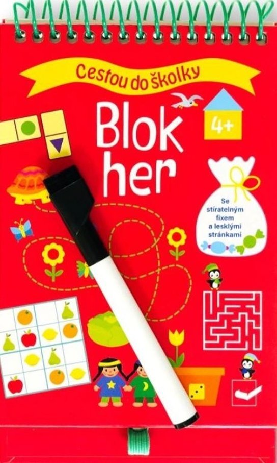 <p>S tímto blokem si děti užijí kreslení, řešení logických řad a procházení bludišť a vyřeší mnoho dalších aktivit. Děti budou dokreslovat a překreslovat obrázky, obtahovat linie či procházet bludištěm. Díky stránkám s lesklým povrchem a stíratelnému fixu s praktickou houbičkou, který je k bloku přiložen, můžou děti všechny úlohy řešit pořád dokola! Řada Cestou do školky představuje dětem hravým způsobem úlohy, které si mohou užít třeba i během krátké chvilky, jako je cesta do školky. Úkoly uzpůsobené věku postupně malé předškoláky rozvíjejí a zabaví.</p>
