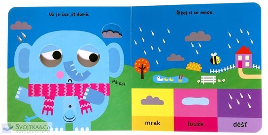 Malé zvídavé slůně se chystá na procházku. Jaké je venku počasí? A jaké si má tedy vzít oblečení? Co budeme venku dělat? Hrát si, nebo krmit kachny? A až bude čas jít domů, bez odmlouvání uděláme pápá. Hlavní obrázek sloníka je jako živý díky výrazným pohyblivým očím. Leporelo s interaktivními prvky, rozvíjejícími jemnou motoriku, děti baví a zároveň nenásilně vzdělává. Rozšiřuje jejich slovní zásobu a učí je vnímat venkovní svět. Je ideální pro batolata velikostí akorát pro jejich malé ruce a prstíky.