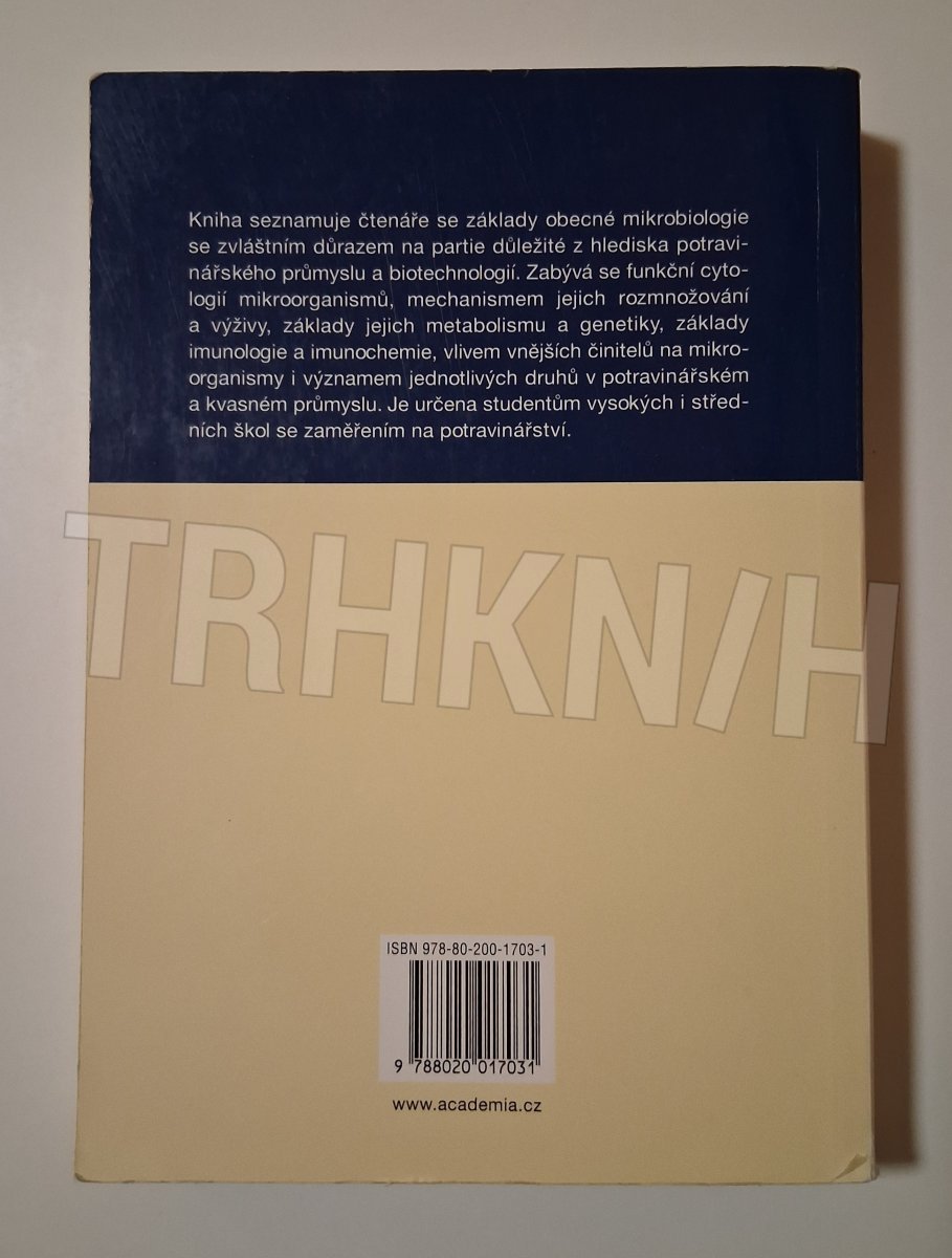Kniha seznamuje čtenáře se základy obecné mikrobiologie s důrazem na partie důležité z hlediska potravinářského průmyslu a biotechnologií. Zabývá se funkční cytologií mikroorganismů, mechanismem jejich rozmnožování a výživy, základy jejich metabolismu a genetiky, základy imunologie a imunochemie, vlivem vnějších činitelů na mikroorganismy i významem jednotlivých druhů v potravinářském a kvasném průmyslu. Publikace je určena studentům vysokých i středních škol se zaměřením na potravinářství.