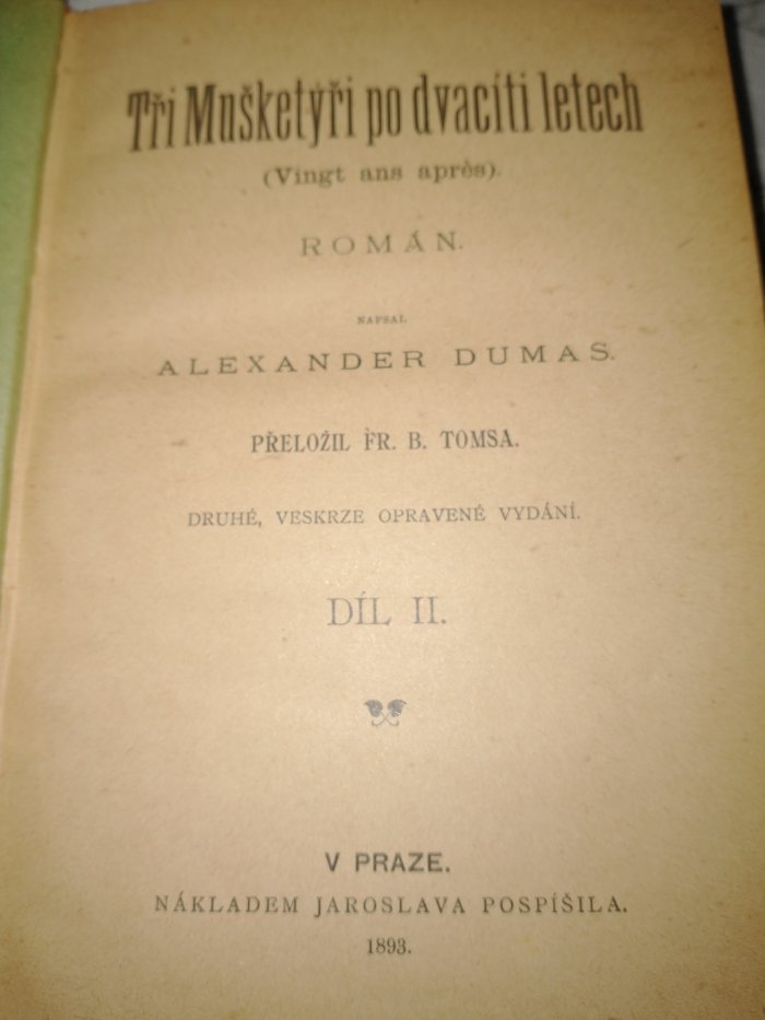 Alexandre Dumas, překlad František Bohumil Tomsa
