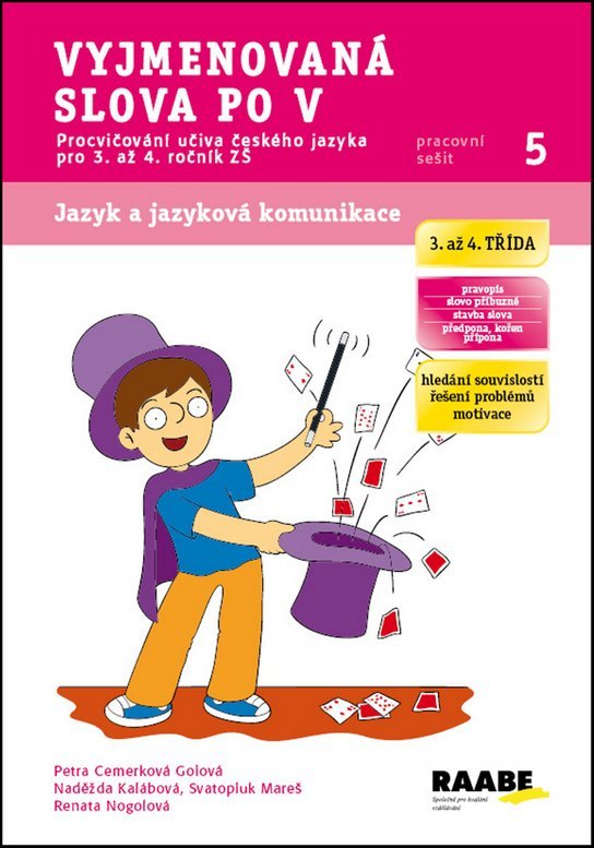 Jaká kouzla umí čeština? To děti poznají během práce s tímto pracovním sešitem. Cvičení jsou tematicky propojena světem magie, kouzel a čarování. Při zkoumání souvislostí mezi získanými informacemi propojí své znalosti s jejich praktickým využitím. Děti procvičují tvoření slov pomocí předpony VY- a upevňují si své znalosti o vyjmenovaných slovech po V. Pracovní sešit přináší dále učivo o slově příbuzném, stavbě slova, předponě, kořenu, příponě. Pracovní sešit je součástí sady 6 pracovních sešitů určených všem školákům 3. a 4. ročníku k procvičování učiva českého jazyka. Pracovní sešity rozvíjí zajímavou a motivační formou základní dovednosti, které jsou důležité pro úspěšné zvládnutí vzdělávací oblasti Jazyk a jazyková komunikace. Dítě díky nim procvičuje jednotlivé jazykové jevy a pravidla, ale především rozvíjí svoji schopnost porozumět textu, přemýšlet o něm a přečtené vnímat v souvislostech s reálným životem. Všechny aktivity tak vhodně navazují na školní vzdělávání podle RVP ZV s důrazem na rozvoj komunikačních kompetencí. Pracovní sešity nabízejí optimální objem aktivit a díky dosažitelnosti úspěšného zvládnutí úkolů podporují pozitivní motivaci dítěte. Každý pracovní sešit je sestaven tak, aby s ním dítě mohlo pracovat samostatně – rodič by měl motivovat, být oporou, povzbuzovat!