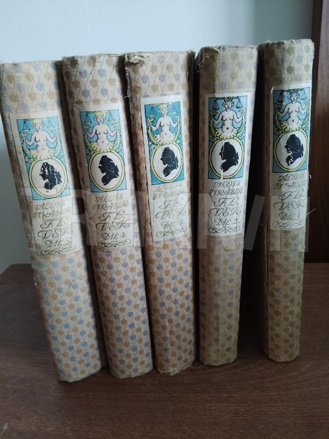 Nabízím kompletní pětidílný historický román F. L. Věk od Aloise Jiráska ve čtvrtém vydání z roku 1936.