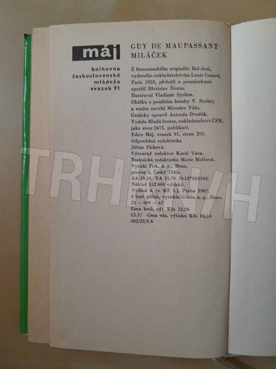 Miláček Autor: Maupassant, Guy de Vydání: 4 Místo vydání: Praha Počet stran: 285 s. Rok vydání: 1967 Vazba: vázaná s obálkou Stav: dobrý Nakladatel: Mladá fronta Kategorie: Beletrie Edice, série: kniha Vytvořeno: 2021-10-14 11:08:51 Naposledy upraveno: 2