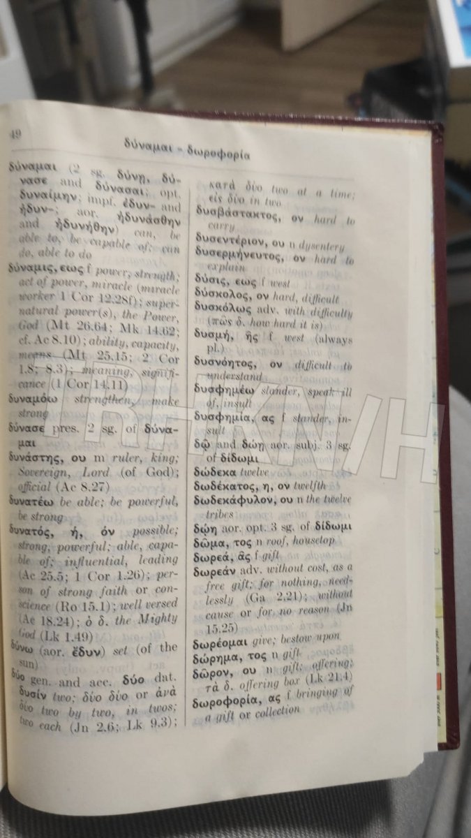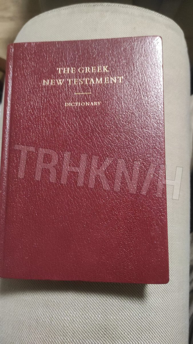 Řecký Nový zákon, na konci knihy 203 stran řecko-anglického slovníku. Mírně používaná, na hřbetu listů je to trochu poznat. Jinak ale zcela v pořádku.