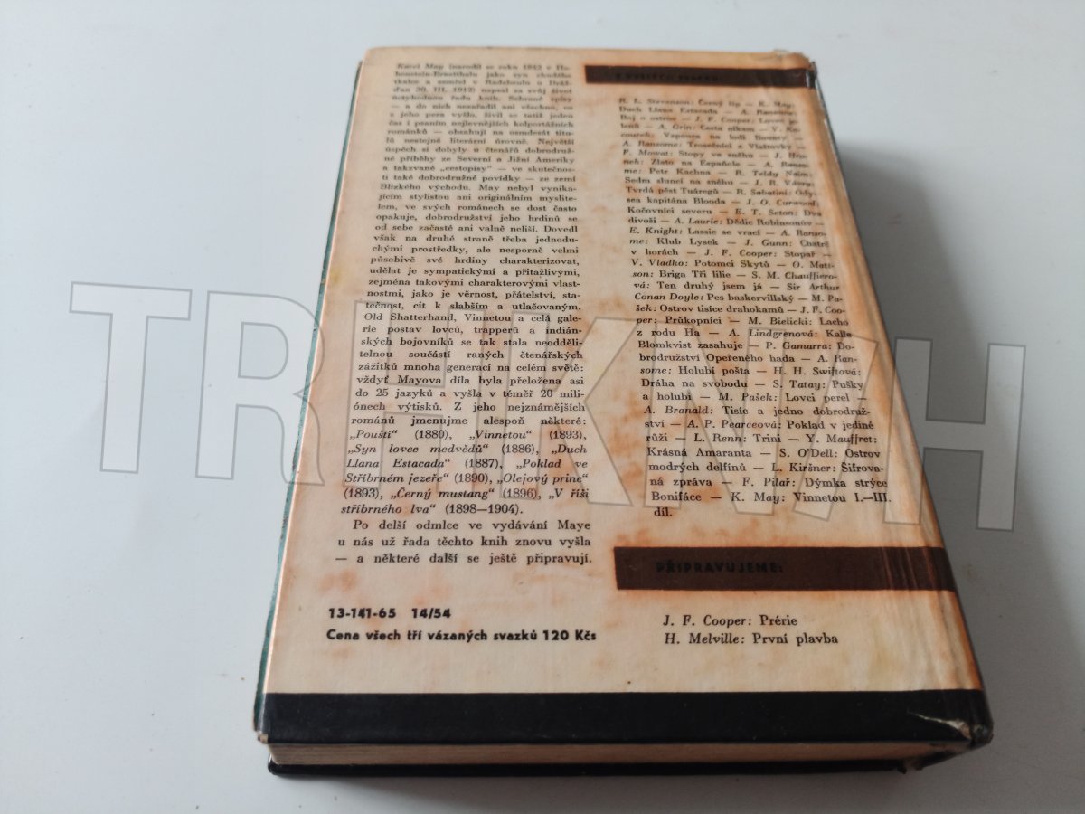 Vstupní svazek cyklu dobrodružných příhod z prostředí severoamerických Indiánů. Jejich hrdinové, "rudý gentleman" Vinnetou a jeho bílý přítel Old Shatterhand, kteří neohroženě bojují ve jménu dobra proti zlu a násilí, jsou už po desetiletí světoznámí a dík filmu v poslední době ještě dále zpopulárněli. Druhý svazek vzrušujících dobrodružných příhod, v nichž Vinnetou a Old Shatterhand znovu a znovu osvědčují ušlechtilé lidské vlastnosti, čest, přátelství, hrdinství a ochotu přispět k dobru, kdykoli jen třeba. Závěrečný svazek příhod Vinnetoua a Old Shatterhanda, v němž Vinnetou umírá zasažen nepřátelskou střelou a Old Shatterhand jej pohřbí i s jeho věrným koněm a slavnou stříbrnou puškou.