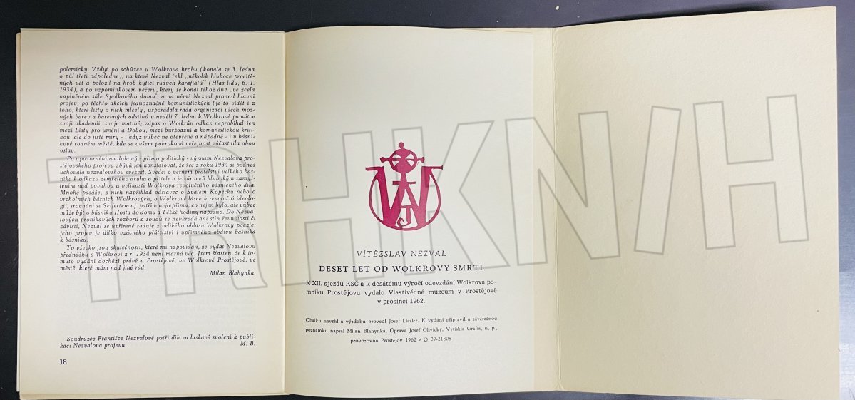 Vítězslav Nezval ; K vyd. připr. a závěr Poznámka ke vztahu Nezval - Wolker naps. Milan Blahynka