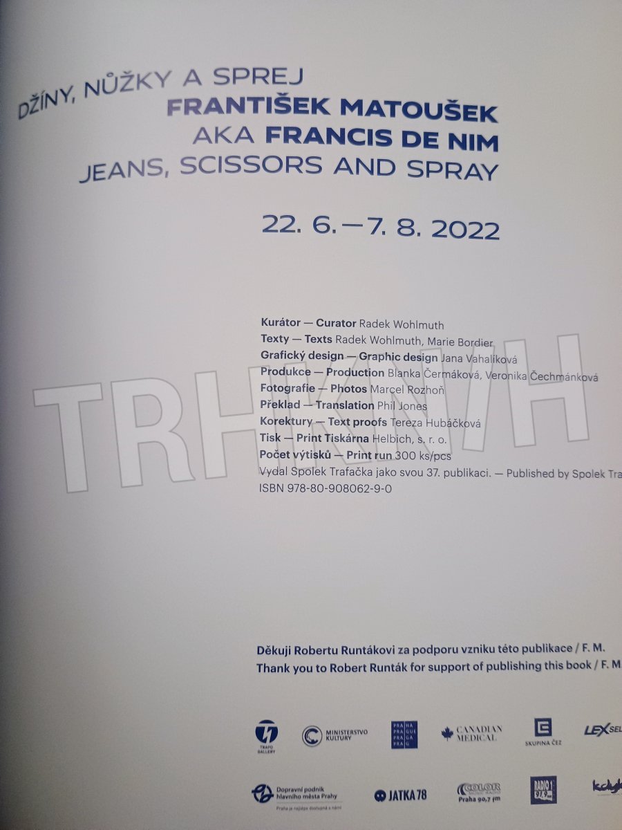 Kniha Džíny nůžky sprej - Dvojjazyčná publikace ke stejnojmenné samostatné výstavě malíře Františka Matouška, jenž se od ostatních umělců výrazně odlišuje originální technologií drhání džínoviny, která mu nahrazuje malířské plátno. - Trh knih - online antikvariát