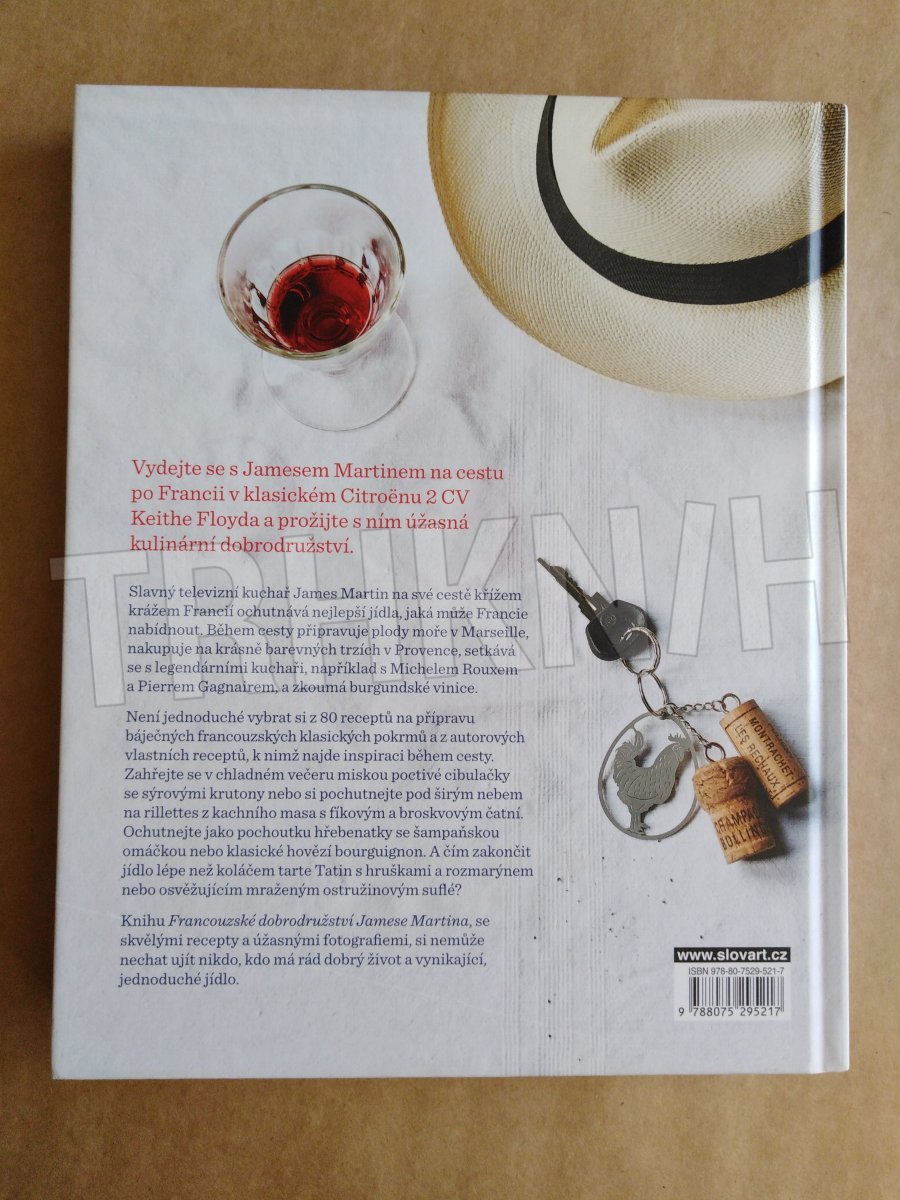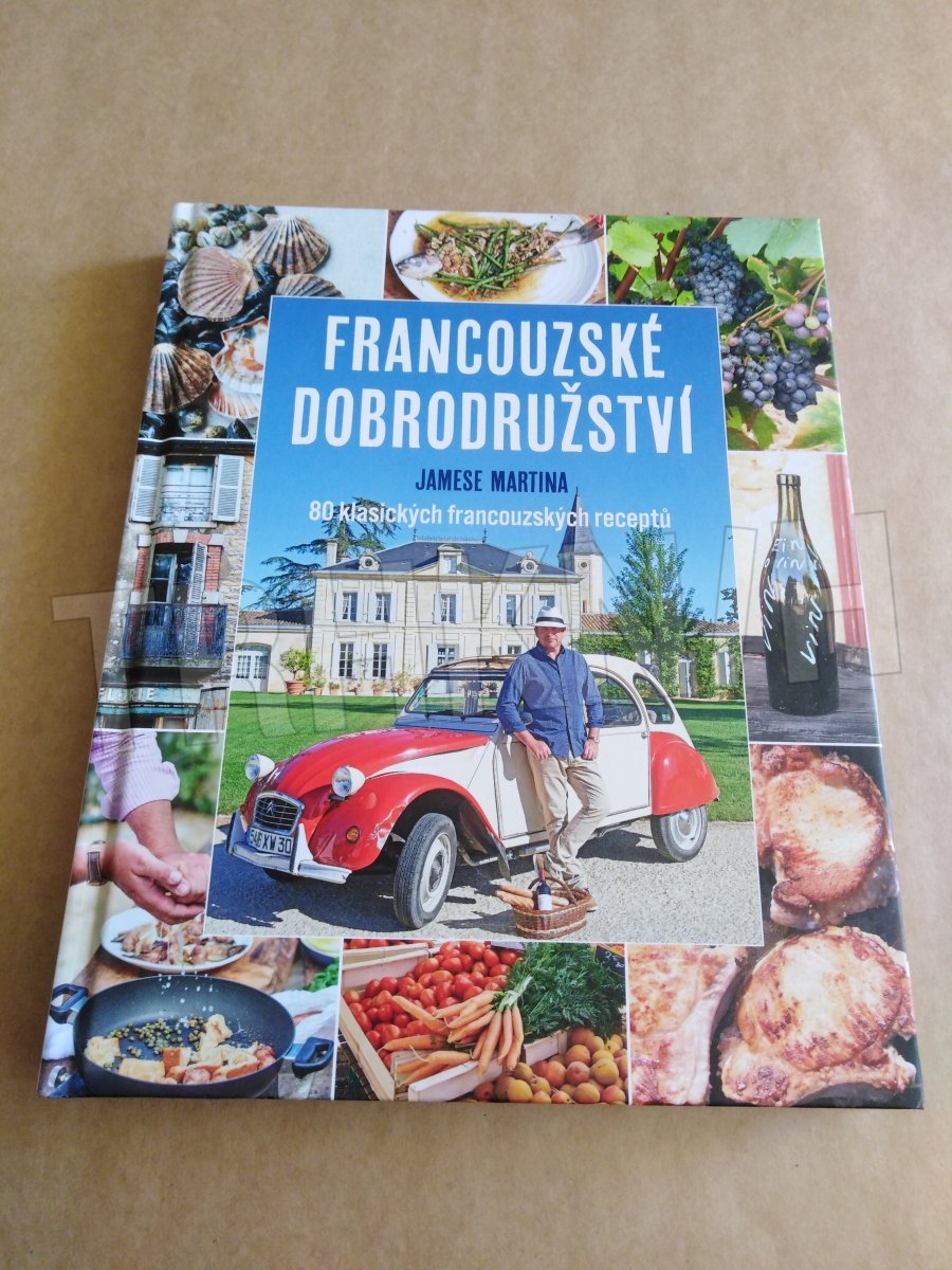 80 klasických francouzských receptů. Vydejte se s kuchařem Jamesem Martinem, kterého zřejmě znáte z TV Paprika, na cestu po Francii v klasickém Citroënu 2 a prožijte s ním úžasná kulinární dobrodružství. Na cestě křížem krážem zemí ochutnává nejlepší jídla, nakupuje na trzích a vaří – zahřejte se jeho poctivou cibulačkou se sýrovými krutony, pochutnejte si na rillettes z kachního masa s fíkovým a broskvovým čatní, připravte si pstruha s mandlemi a fazolkami, zařaďte do svého repertoáru klasické hovězí po burgundsku nebo králíka v hořčičné omáčce, naučte se správně udělat brambory gratin dauphinois či salade niçoise s grilovaným tuňákem. A čím zakončit jídlo lépe než koláčem tarte Tatin s hruškami a rozmarýnem nebo mraženým ostružinovým suflé…
