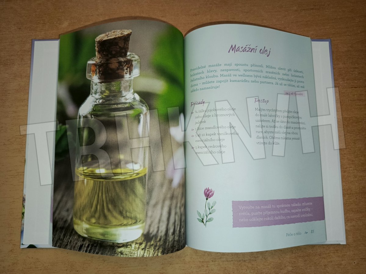 Předpisy a návody k domácí výrobě kosmetických přípravků.Jednoduché recepty z přírodních a snadno dostupných ingrediencí na výrobu kosmetiky bez chemikálií a škodlivých složek. Jsou určeny pro malé množství, neobsahují konzervanty, trvanlivost je krátká. Přehled potřebných surovin, základních potřeb a pomůcek. Výrobky k péči o pleť, ruce, tělo, vlasy. Léčivé recepty na balzámy, koupele a mazání, které pomohou ulevit od bolesti. V samotném závěru je uveden rodinný recept autorky na guacamole.