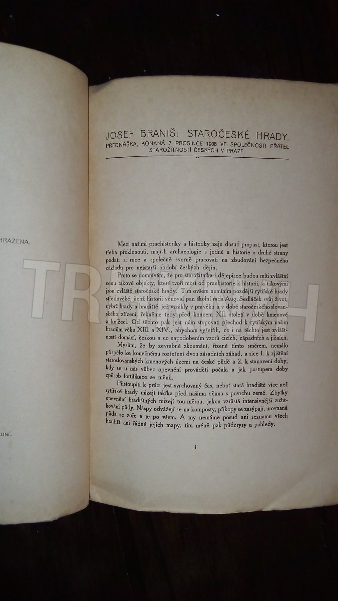ve schůzi Společnosti přátel starožitností českých v Praze přednesl Josef Braniš