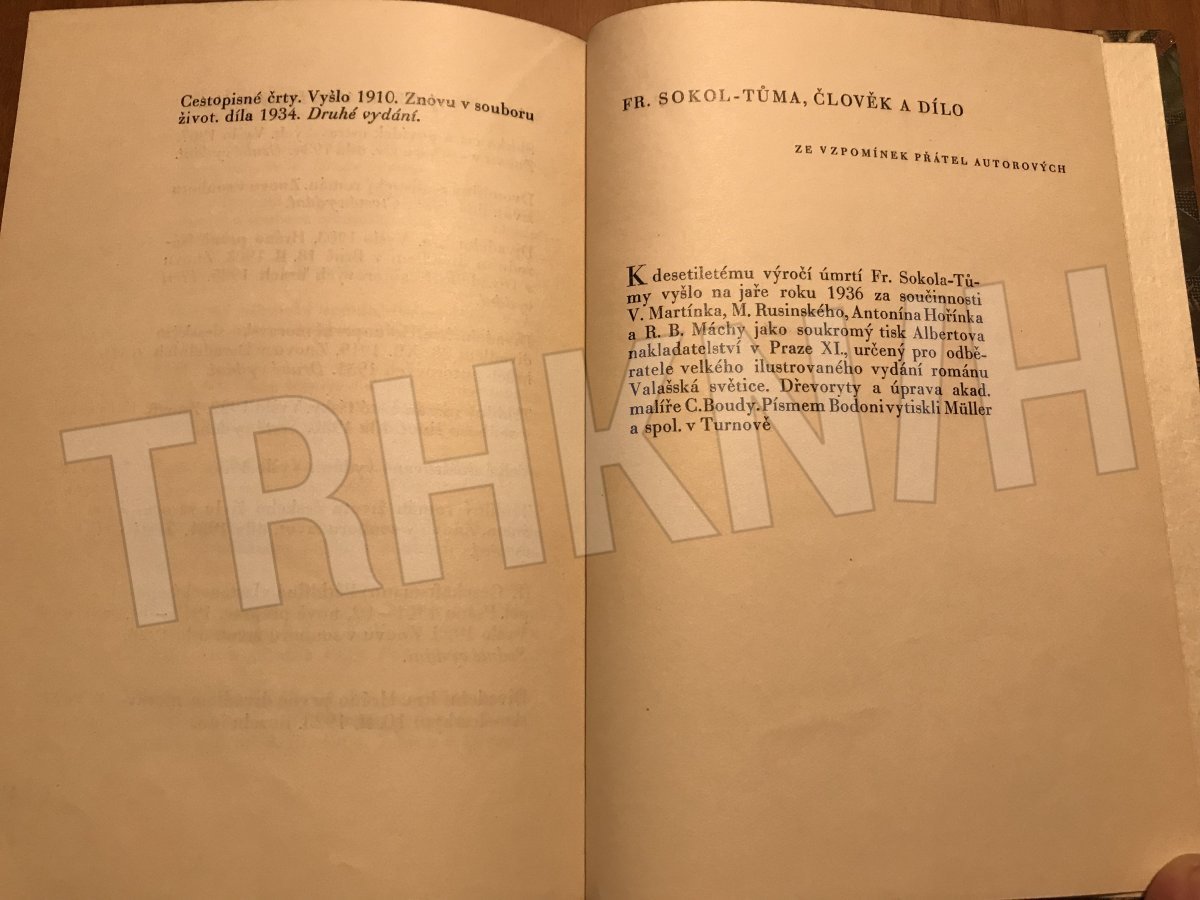 [k desetiletému výročí úmrtí Fr. Sokola-Tůmy ... za součinnosti V. Martínka, M. Rusinského, Antonína Hořínka a R.B. Máchy jako soukromý novoroční tisk ... ; dřevoryty a úprava C. Boudy]
