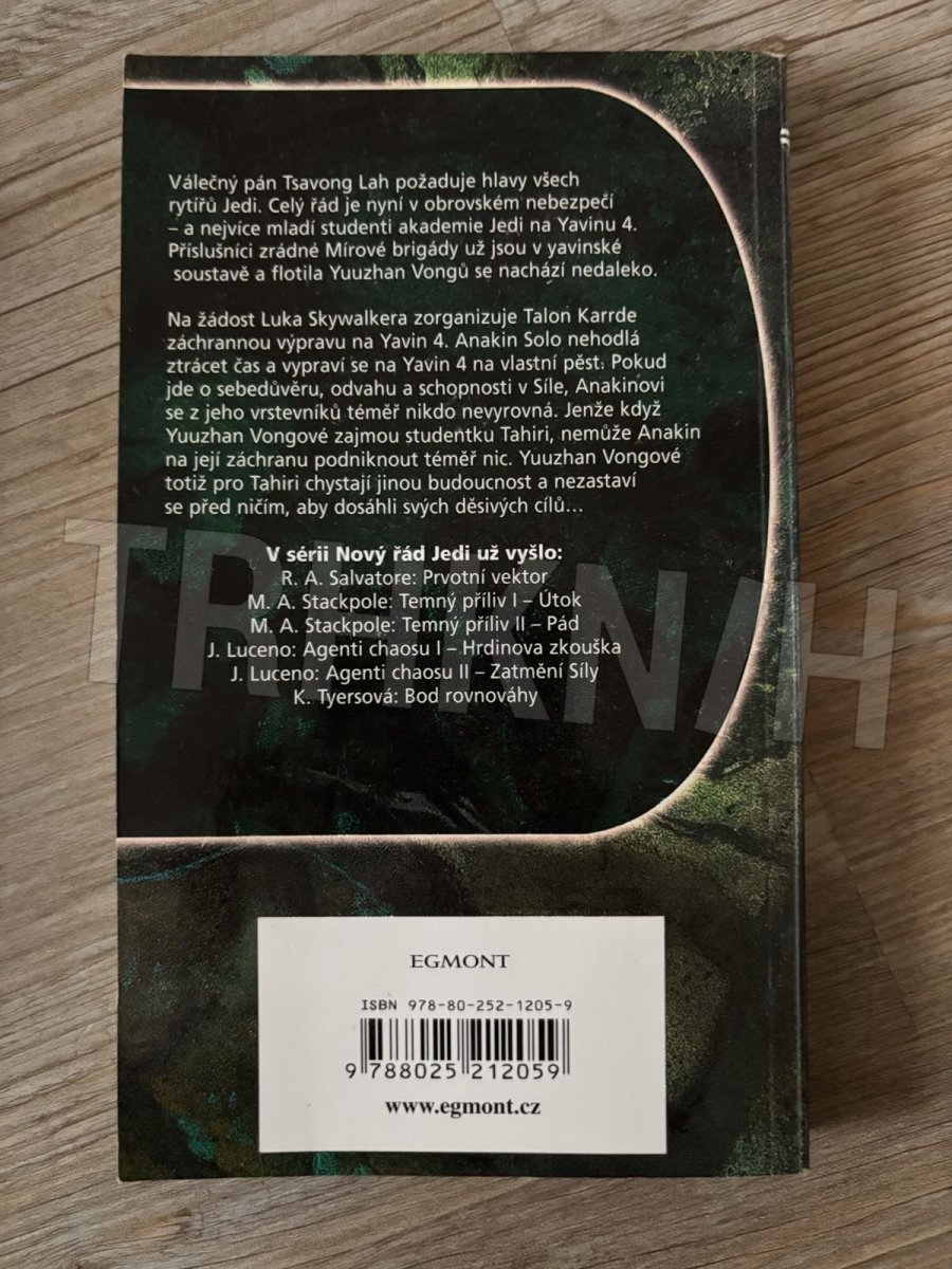 Válečný pán Tsavong Lah požaduje hlavy všech rytířů Jedi. Celý řád je nyní v obrovském nebezpečí - a nejvíce mladí studenti akademie Jedi na Yavinu 4. Příslušníci zrádné Mírové brigády už jsou v yavinské soustavě a flotila Yuuzhan Vongů se nachází nedaleko. Na žádost Luka Skywalkera zorganizuje Talon Karrde záchrannou výpravu na Yavin 4. Anakin Solo má ovšem své vlastní plány a vypraví se na Yavin 4 na vlastní pěst. Pokud jde o sebedůvěru, odvahu a schopnosti v Síle, Anakinovi se z jeho vrstevníků téměř nikdo nevyrovná. Jenže když Yuuzhan Vongové zajmou studentku Tahiri, nemůže Anakin na její záchranu podniknout téměř nic. Yuuzhan Vongové totiž pro Tahiri chystají jinou budoucnost a nezastaví se před ničím, aby dosáhli svých děsivých cílů…
