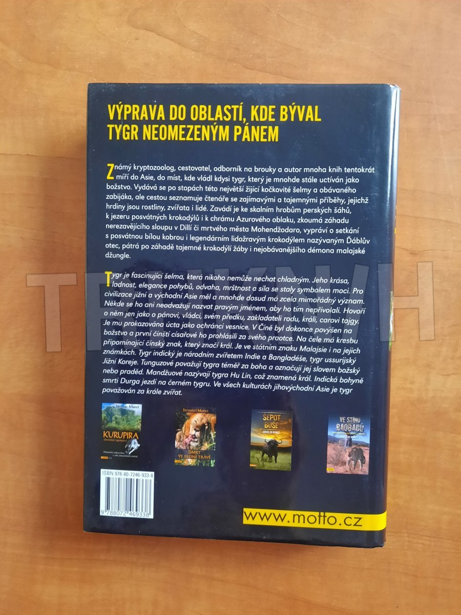 Autor fascinujících příběhů z exotických zemí nás tentokrát zavede do říše tygra, tedy do střední, jihovýchodní a východní Asie. V odlehlých oblastech těchto krajů je tygr dodnes uctíván jako božstvo a přetrvává zde i víra, že určití lidé mohou na sebe vzít tygří podobu. Kromě tajemných převtělení vypráví autor o podivuhodných zážitcích z divočiny a neuvěřitelných dobrodružstvích, která v těchto zemích prožil na vlastní kůži. Knihu doplňuje rozsáhlá příloha originálních barevných fotografií.