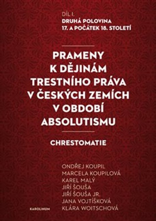 Kniha představuje prameny k trestnímu právu v českém státě v 17. a v první polovině 18. století. Klade si za úkol seznámit historiky, právníky, ale i širší veřejnost s kořeny právní kultury, ze které se zrodilo moderní trestní právo konce 18. a 19. století platné v českých zemích. Absolutistické zákoníky začínají opouštět sakrální chápání zločinu a trestu a výrazně uplatňují státní zájem, ať je již chápán jako vůle panovníka, či absolutistického státu jako celku. Bez pochopení tohoto mezistupně mezi stavovstvím a dobou moderní neporozumíme logice evoluce trestněprávních koncepcí a vývoji, ke kterému dochází zvláště v době ovlivněné idejemi osvícenství.