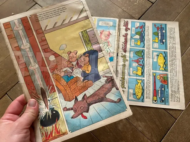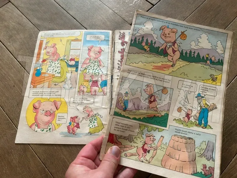 Komiks o tří prasátkách, kompletní, nepočmáraný, z roku 1969.