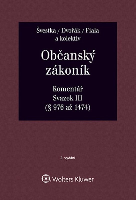 Úspěšný komentář občanského zákoníku vychází po pěti letech ve druhém, aktualizovaném a doplněném vydání. Kolektivní dílo více než 70 předních českých civilistů reflektuje novou judikaturu i literaturu, která od prvního vydání k problematice vznikla, a především reaguje na každodenní problémy praxe a snaží se je překlenout výkladem. Komentář vznikl pod vedením emeritního profesora katedry občanského práva Právnické fakulty UK prof. JUDr. Jiřího Švestky, vedoucího téže katedry prof. JUDr. Jana Dvořáka a soudce Ústavního soudu prof. JUDr. Josefa Fialy. Kolektiv tvoří zástupci všech právnických profesí včetně akademiků, díky čemuž jsou zastoupeny různé úhly pohledu a vyloženy také nezbytné procesní souvislosti. Svazek III obsahuje výklad všeobecných ustanovení k absolutním majetkovým právům a výklad věcných práv, tedy komentář § 976 až 1474.