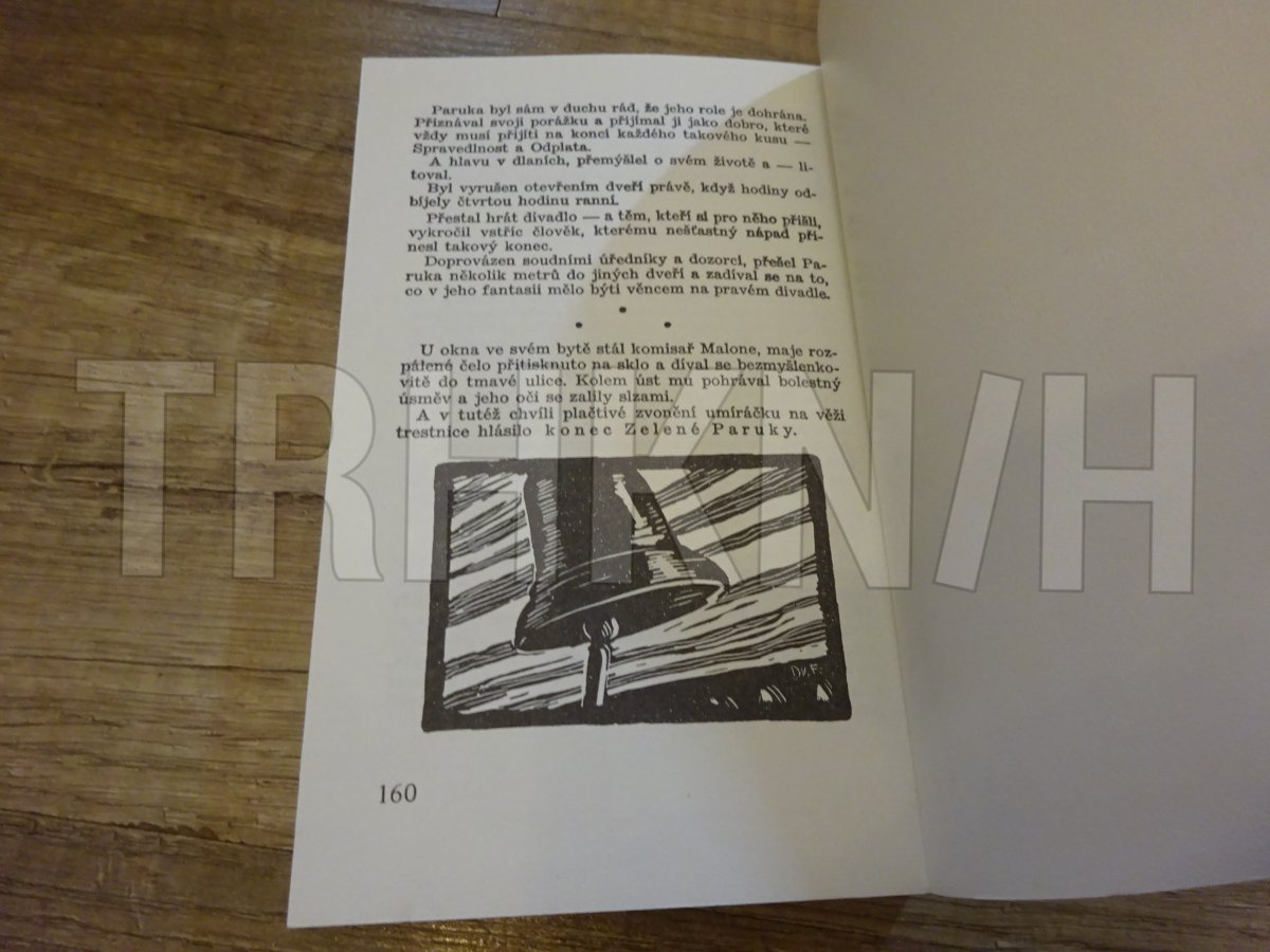 Hrany desek jsou lehce odřené, na hřbetu je několik rýh a hřbet je vybledlý. Vnitřek knihy je pěkný.