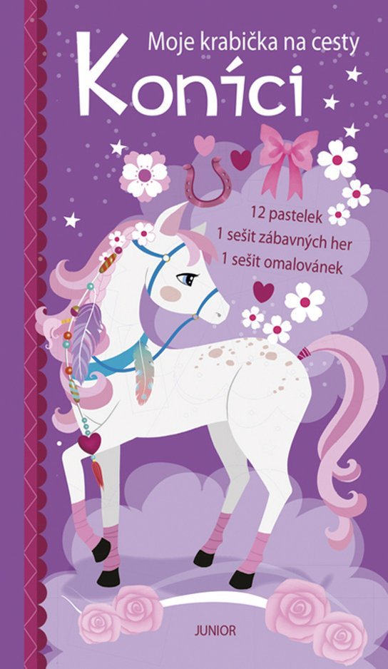 Objev v téhle báječné krabičce ty nejkrásnější koníky! Sada obsahuje sešit omalovánek s koníky, další sešit s množstvím zábavných her a úloh k řešení a navíc 12 pastelek. Vše, co potřebuješ k zábavě, tu máš pohromadě a můžeš mít kdykoli u sebe. Maluj, lušti, bav se a tvoř!