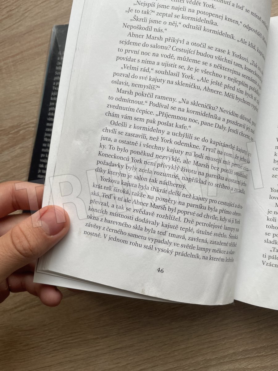 knížka je vyřazena z knihovny (je v ochranném obalu, který jde lehce odlepit a na první stránce je razítko), asi pět stran uprostřed malinko zvlněných