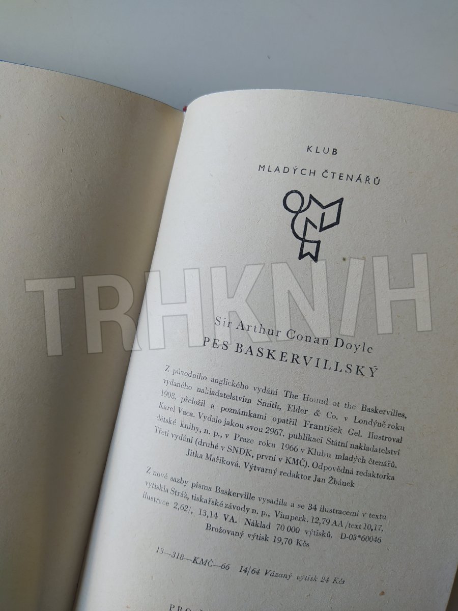 Pes baskervillský : další dobrodružství Sherlocka Holmese Autor: Doyle, Arthur Conan Vydání: 3 Místo vydání: Praha Počet stran: 194 s. Rok vydání: 1966 Vazba: vázaná Stav: dobrý Nakladatel: SNDK Kategorie: Detektivky Edice, série: kniha Vytvořeno: 2018-1
