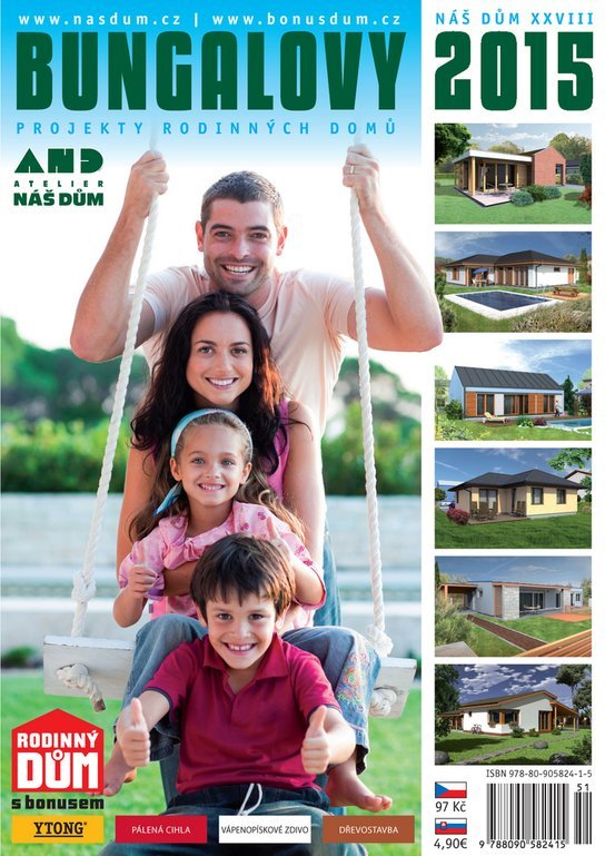 V Katalogu budou prezentovány hlavně přízemní domy – bungalovy z naší nabídky, ale i patrové domy. V přehledu domů naleznete kompletní nabídku 650 projektů domů nabízených firmou Atelier NÁŠ DŮM s.r.o., které je možné realizovat z vybraných stavebních materiálů: z pálené cihly, pórobetonu, vápenopískového dřeva nebo jako dřevostavbu. Katalog blíže představuje také nabídku nabídku domů s garantovanou cenou realizace již od 0,8 mil. Na vybraných ukázkách si můžete prohlédnout reference individuálních projektů, které byly navrhovány přesně podle představ a přání klientů Atelieru NÁŠ DŮM s.r.o.. V katalogu je opět prezentován program RODINNÝ DŮM S BONUSEM, který jsme pro své klienty připravili společně s firmou Architektonická kancelář Křivka s.r.o, stavebniny Raab Karcher a hlavními dodavateli materiálů, výrobků a služeb.