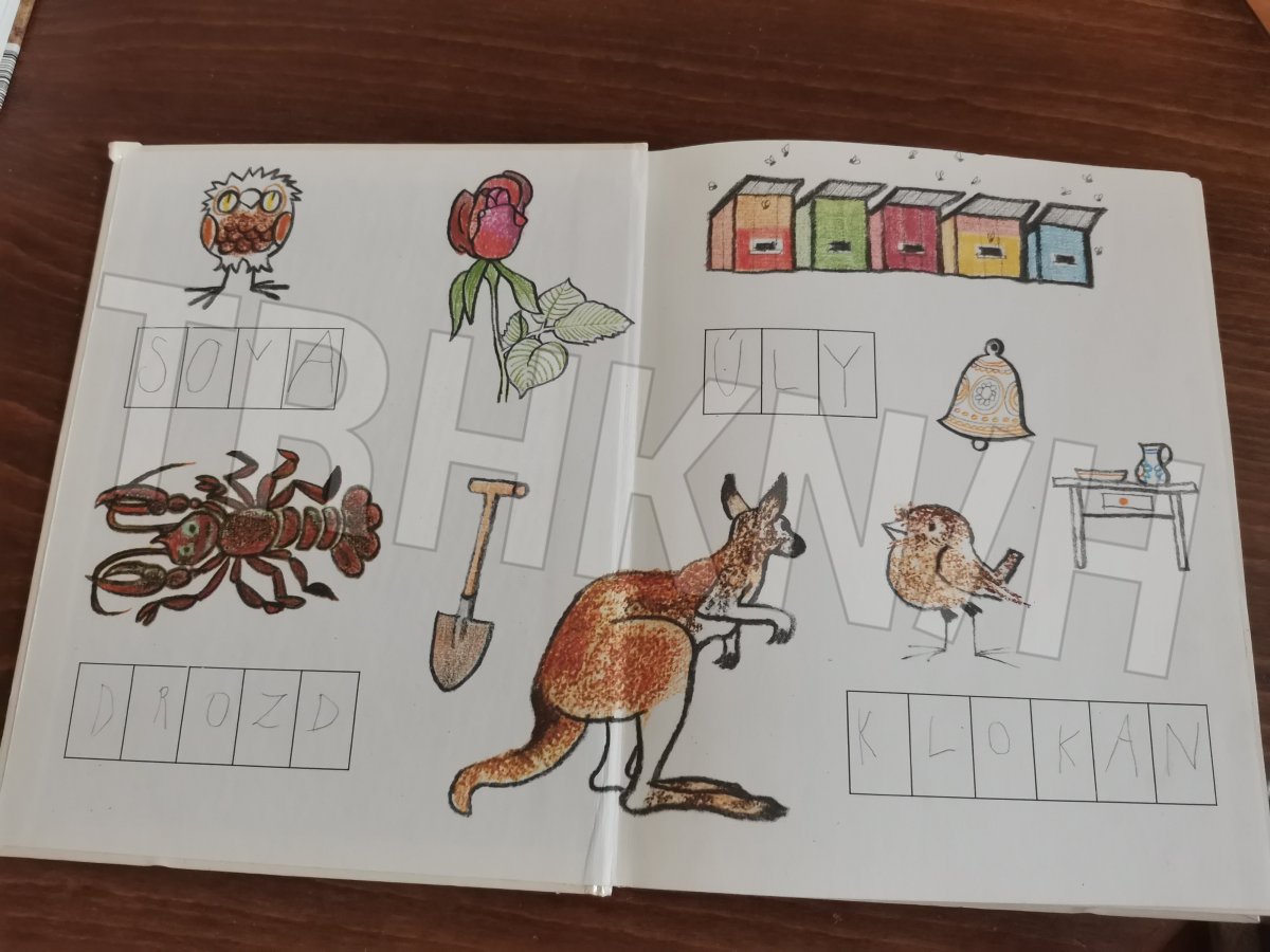 podepsaná tužkou žákem, každá strana podepsaná tužkou rodičem, některé úkoly tužkou vyhotoveny, papír žloutne ale bez fleků, růžky ošoupané na straně 32-33 se něčím dole slepilo a tak je to vidět jak se to pak zase rozlepovalo do textu nezasahuje, vazba p