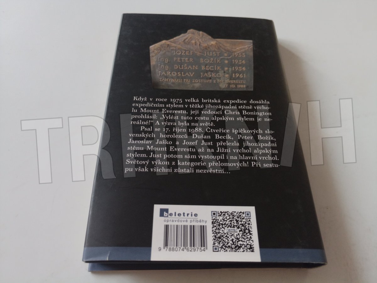 Příběh jednoho velkého zapomenutého prvenství. Když v roce 1975 velká britská expedice dosáhla expedičním stylem s použitím kyslíkových bomb, velkého množství materiálu a s pomocí šerpů v těžké jihozápadní stěně vrcholu Mount Everestu, její vedoucí Chris Bonington prohlásil: „Vylézt tuto cestu alpským stylem je nereálné!“ A výzva byla na světě.Psal se 17. říjen 1988. Čtveřice špičkových slovenských horolezců Dušan Becík, Peter Božík, Jaroslav Jaško a Jozef Just přelezla jihozápadní stěnu Mount Everestu až na Jižní vrchol alpským stylem. Just potom sám vystoupil i na hlavní vrchol. Světový výkon z kategorie přelomových! Při sestupu však všichni zůstali nezvěstní…