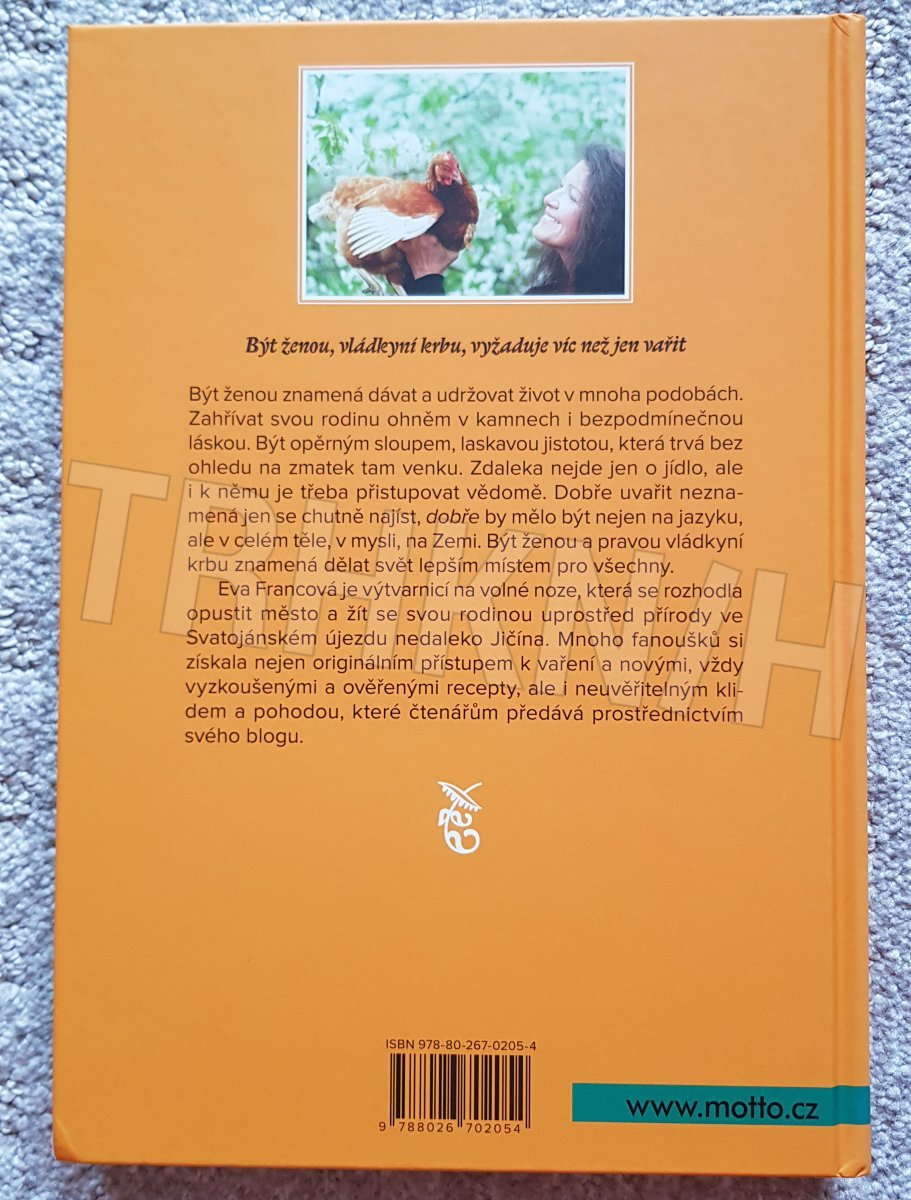 Být ženou znamená dávat a udržovat život v mnoha podobách. Zahřívat svou rodinu ohněm v kamnech i bezpodmínečnou láskou. Být opěrným sloupem, laskavou jistotou, která trvá bez ohledu na zmatek tam venku. Zdaleka nejde jen o jídlo, ale i k němu je třeba přistupovat vědomě. Dobře uvařit neznamená jen se chutně najíst, „dobře“ by mělo být nejen na jazyku, ale v celém těle, v mysli, na Zemi. Být ženou a pravou vládkyní krbu znamená dělat svět lepším místem pro všechny. Eva Francová je výtvarnicí na volné noze, která se rozhodla opustit město a žít se svou rodinou uprostřed přírody ve Svatojanském újezdu nedaleko Jičína.