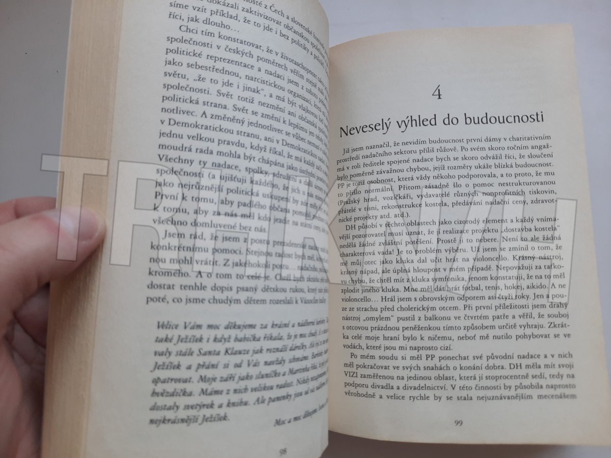 | Osobní předání možno po dohodě v centru Prahy: V Jámě 1, po-čt 8-18, pá 8-17. Bydlím v Černošicích a tam je předání též možné. Knihy se nacházejí v Černošicích. Pokud pokládáte dotaz a předem nezaplatíte trhuknih, Váš vzkaz sice vidím, ale nemám kam na něj odpovědět. Váš kontakt se mi zobrazí až po zaplacení. Příjemné nakupování přeji. Šárka | |