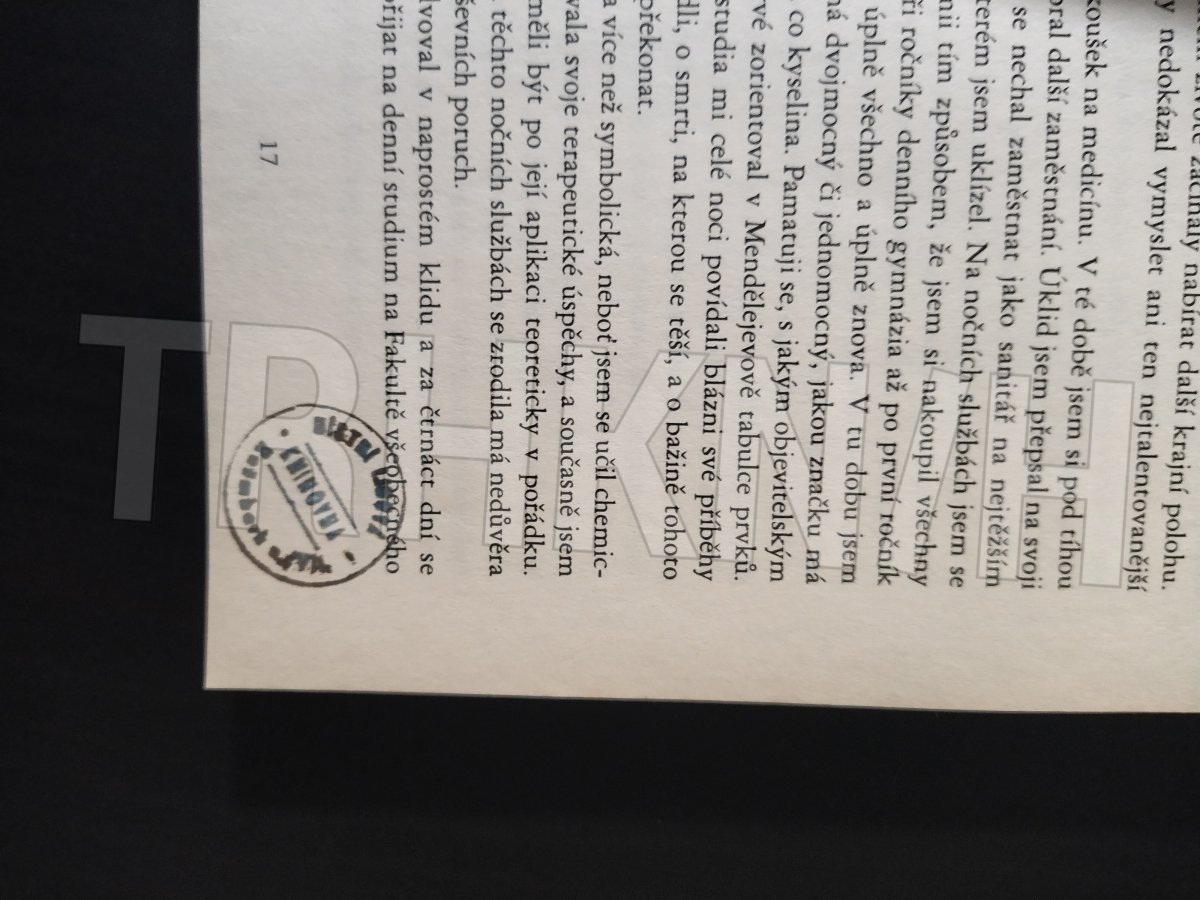 Druhá polovina knihy tekutinou mírně zvlněná