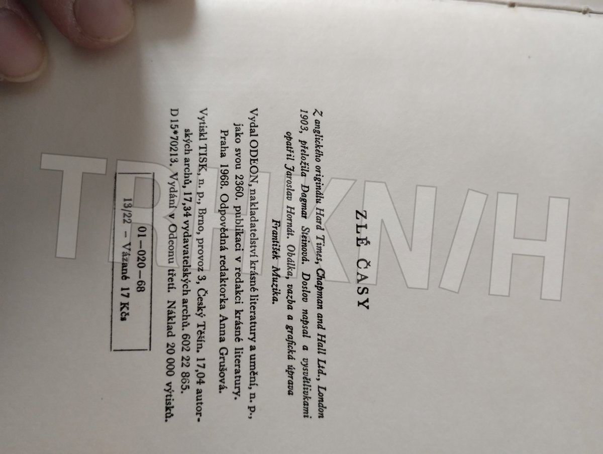 Charles Dickens ; z angl. orig. přel. Dagmar Steinová ; doslov Dickens a sociální otázka zlých časů a vysvětl. naps. Jaroslav Hornát