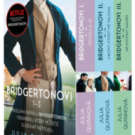 Přeneste se s tímto nápaditým boxem do tanečních sálů regentského Londýna. Čekají vás velmi svérázní aristokraté a nespočet zářivých plesů. Potkáte spoustu šarmantních mužů a troufalých žen, vyslechnete nekonečno klepů, a než se nadějete, stanete se obětí vychytralých intrikánek… V této sbírce na vás čekají první tři knihy – Vévoda a já; Vikomt, který mě miloval; Nevhodný návrh – celosvětově oblíbené série Bridgertonovi, jež se stala předlohou fenoménu, který můžete v současné době sledovat na Netflixu.