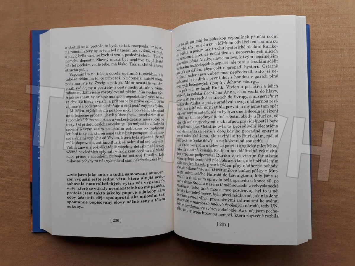 Blíží se konec milénia, doba, kdy v naší republice po několika málo letech naděje zlo minulosti opět začíná zapouštět své kořeny. Vypravěč, konečně svobodný a volný, odjíždí na dobrodružnou cestu po Africe, která ho má zavést až do daleké Keni, cestu plnou vášně, erotických zážitků a nezapomenutelných setkání. Přichází čas vzpomínání a bilancování, čas přemýšlení a filozofických diskusí. Vypravěč se nikdy nezaprodal, ale přesto v něm zůstává neznatelná pachuť z toho, kam se mohl jeho život ubírat, kdyby žil ve svobodném světě, a ne pod dohledem mocné StB. A všechna ta vítězství i prohry, strach i drobné triumfy najednou začínají dostávat jiný význam. Přichází čas zúčtování se zlem minulosti, ale i čas smíření...