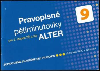 Pravopisné pětiminutovky 9 završují řadu pracovních sešitů ALTER k procvičování pravopisu v jednotlivých ročnících základní školy a v nižších ročnících víceletých gymnázií. Titul zachovává koncepci a strukturu jako Pravopisné pětiminutovky 8. Je rovněž rozčleněn do čtyř základních bloků: I. pravopis lexikální a slovotvorný; II. pravopis tvaroslovný a syntaktický; III. korektura textu; IV. souhrnná cvičení. Většina cvičení je však pojata všestranně a komplexně, tj. obvykle se v jednom cvičení vyskytují různé jevy s důrazem na jednu jazykovou oblast. V sešitě uživatelé najdou odkazy na konkrétní strany z Přehledů českého jazyka ALTER pro žáky a studenty (kód 092998), kde se lze v právě procvičované látce zorientovat. Výraznými motivačními prvky jsou živá slovní spojení i věty a grafická velkorysost. Titul je opatřen tištěným klíčem s řešeními.